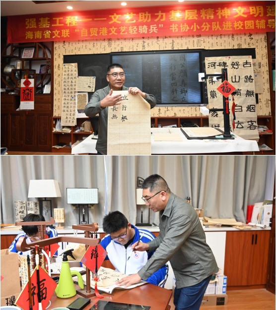 2023年12月8日,“我们的中国梦——文化进万家”海南省文联“自贸港文艺轻骑兵”书协小分队进校园辅导培训。