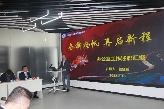 姜童副校长对中层干部述职方式和要求作出说明。接着,全体中层干部依次以演示文稿方式向大会报告2021年度工作开展情况,围绕年度取得成绩、存在主要问题及今后工作思路三个方面,晒工作、述业绩、摆问题、定目标,言辞诚恳,娓娓道来,集中展示了学校中层干部在各自岗位付出的辛勤努力,做出的重要贡献,充分体现了华迈干部积极奉献、奋发进取的精神风貌,述职内容赢得了与会人员的点赞和鼓掌。