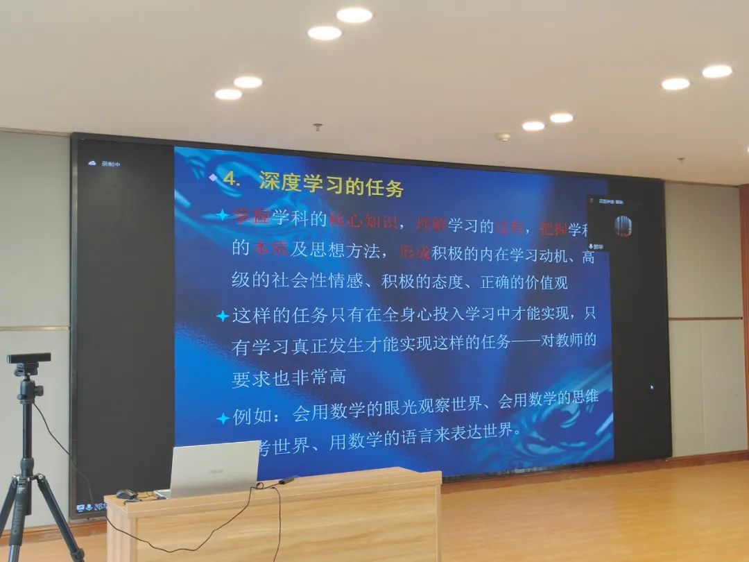 华东师范大学澄迈实验中学一直倡导并践行“心新教育”思想。其四大核心理念之一是培养学生“深度、自主”的学养,即以学生为主体,通过深度学习,学生自我独立地用分析、探索、实践、质疑、创造等方法来实现学习目标和自我成长,培养学生的批判性思维与创新精神,培养学生的知识迁移和应用能力。值此国家“双减”大背景下,在澄迈县“能力提升建设年”的关键节点,为加强专业教师队伍建设,扎实推进深度学习课堂教学改革,促进教师进一步掌握教育教学规律、熟练教学技能、更新教育观念、转变教师的教育教学行为和学生的学习方式,进一步提高课堂教学的质量,5月11日,我校特邀北京师范大学郭华教授带来题为《深度学习与课堂教学改进》的线上精彩讲座,会议由学校科研处李维林主任主持。
