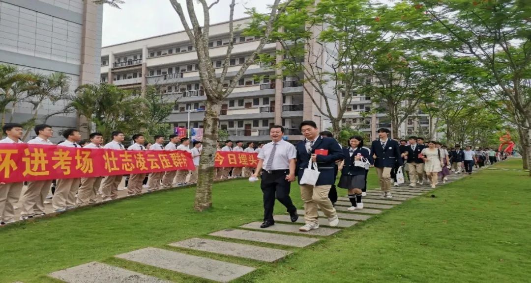 当学生和家长穿越青云桥,停驻在妙笔生花广场,象征谦谦君子的莲花妙笔将给予学生力量,也期盼着在高考的考场中用根植心中的华迈妙笔,挥毫人生,书写芳华。