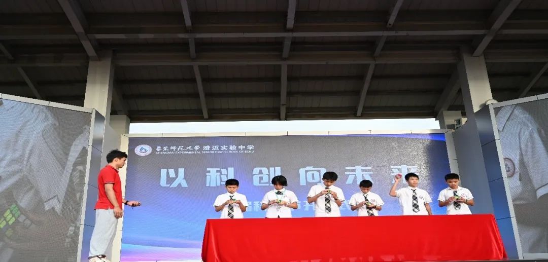 2022年5月30日,华东师范大学澄迈实验中学科创节闭幕仪式在学校运动场举行,学校全体领导、体育组、物理组、化学组、生物组、信息组、各班班主任和全体学生参加了科创节闭幕式。闭幕仪式有五项活动,分别为:升旗仪式;学生代表讲话;教师代表讲话;学校领导总结讲话;获奖学生领奖。