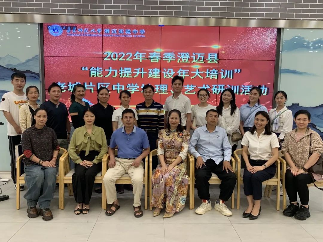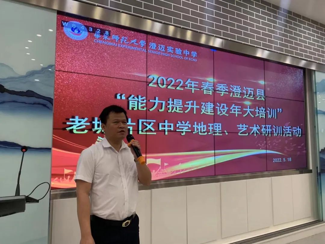 根据澄迈县教师研训中心《关于印发(2021澄迈县中小学、幼儿园县级研训校本化项目实施方案)的通知》精神,2022年5月18日,华东师范大学澄迈实验中学开展了以提升课堂教学能力为主题的《2022年春季澄迈县“能力提升建设年大培训”老城片区中学地理、艺术研训活动》,老城片区初中学校(含九年一贯制学校)的地理、艺术教师参加了活动,县师训中心林尤谊、蔡亲亲、唐雪真、林冰、蒙绪烽等领导专家莅临现场指导。全体参会教师首先在华迈实验中学新空间集中,督学罗家忠主持会议并代表学校致辞,澄迈县教师研训中心培训室主任林尤谊和老城片区负责教研员蔡亲亲分别讲话并对活动提要求。会后,分组开展研训活动。