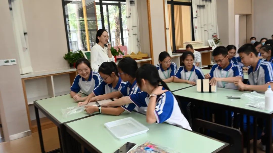 课堂上,王老师通过让学生观看微课、押花器拆解实验探究、植物创意表现、赏析作品、实践体验等教学活动,引导学生自主学习和探究,初步了解押花艺术特点和工艺流程,感受押花艺术之美,培养学生热爱民间传统艺术的情感。