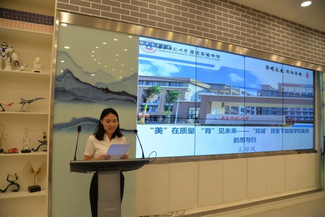 华迈实验中学艺体处主任王琼凤老师做了题为《“美”在质量“育”见未来——“双减”背景下加强学校美育的思与行》的专题讲座,分享了华迈和她自己如何把五育并举融入到日常教学的思考和探索,通过美的情感、美的言辞、美的理性、美的气度、美的结构,揭示新思想、新科学、真理性来点燃学生的学习热情,从而受到美的熏陶、美的启迪,培养学生追求科学与真理的兴趣和志向。