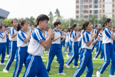 华东师范大学澄迈实验中学的孩子们迎着朝阳,用最抖擞的精神,最有力的动作向青春展示风姿。卓越属于你们,未来等待你们。