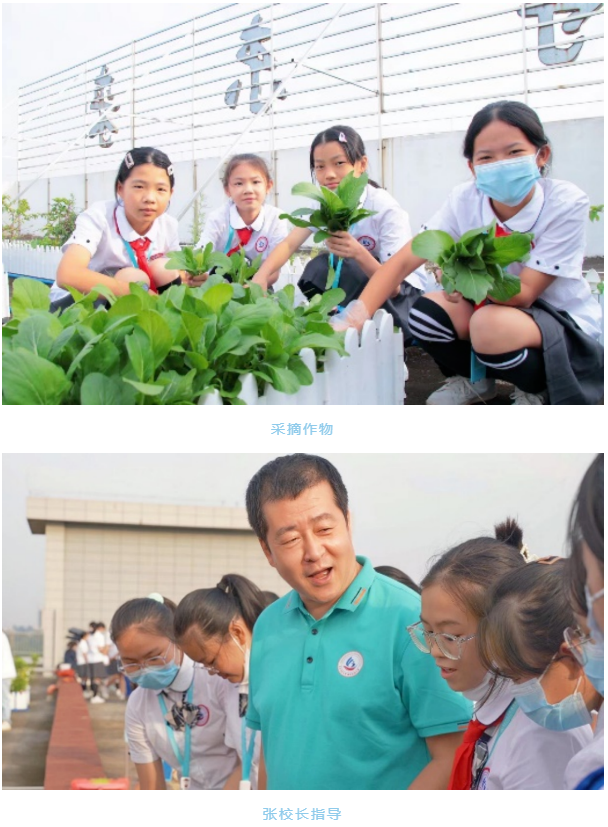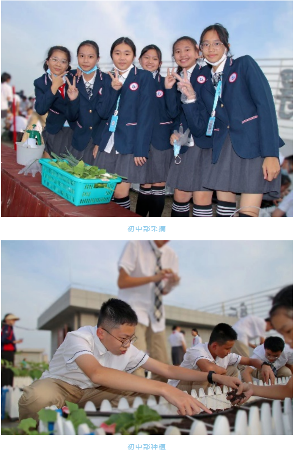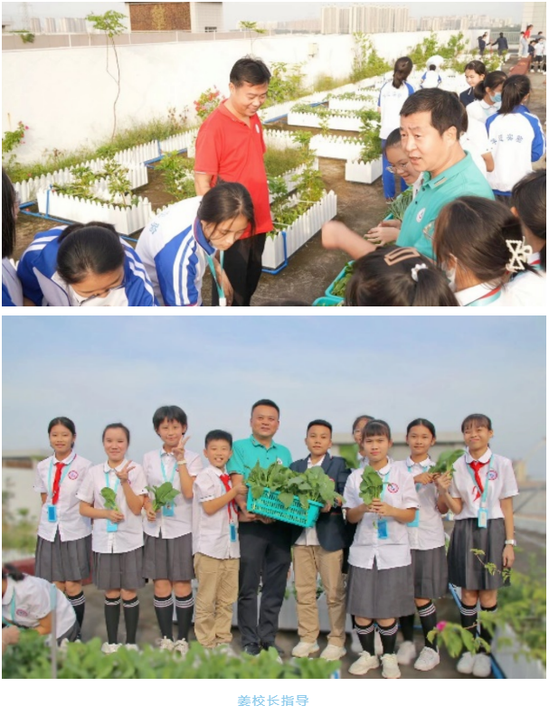 02 初中:锦新楼空中菜园 同一时间在学校锦新楼空中农场,初中组做了详实的准备,从铲子喷壶到一次性手套,以及最后清理垃圾的垃圾袋垃圾铲,很好地体现了尊重自然、顺应自然和保护自然的理念。初中生物老师详实地讲解,学生们都说学到了很多课堂上不曾见过的田园知识。在采摘和种植的过程中,张喜忠校长也参与到活动中来,在欢声笑语中与学生们共同劳动。