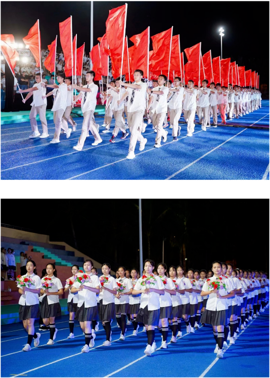 11月29日19:30分,华东师范大学澄迈实验中学第二届校园文化体育节盛大开幕!在主席台上就坐的有张喜忠校长,姜童副校长,王屹副书记等校级领导和部分中层干部。全体师生各就各位。只见国歌响起,全体师生立正,向国旗行最崇高的敬礼,夜空中国旗校旗班旗猎猎飘扬,华迈学子身姿如松,气势如虹,整齐的方阵似一个个古老的中国字。爱国、爱校、爱家是每个华迈人流淌在血液里的基因密码。