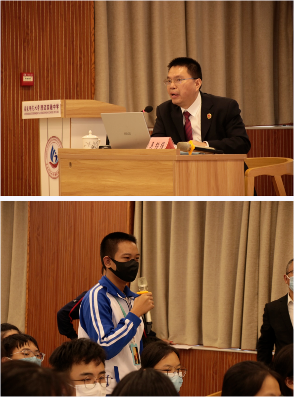 讲座上,吴绍维检察长从“法律是什么”“为什么要学习法律”“与未成年人相关的两个问题”三个方面,围绕工作实际,立足自身思考,结合了多个典型案例,分析了每个案例中存在的法律问题,指出了每个案例对于我们的启示,对法律意识在学生生活中所起到的作用进行了系统阐述和深入解读。华迈的学生们对能够聆听吴检察长的讲座很是兴奋,在讲座中积极思考,勤于记录,踊跃互动,讲座氛围热烈。