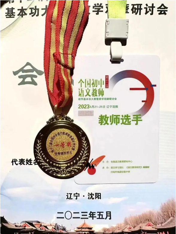 第十二届(2023年)全国初中语文教师教学基本功大赛在辽宁沈阳圆满落幕,我校袁德明老师荣获优秀课例评比一等奖!