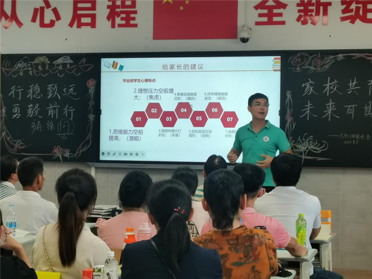 守初心,启新程,向未来,让每个生命精彩绽放。为了更好地实现家校共育,让家长了解孩子在学校的学习和生活情况,增进家长对学校工作的了解,提高家庭教育的理念,真正达到家校携手共同培养孩子的目标,为明年的中考奠定坚实的基础,我校于2023年9月8日下午召开2024届初三年级家长会。