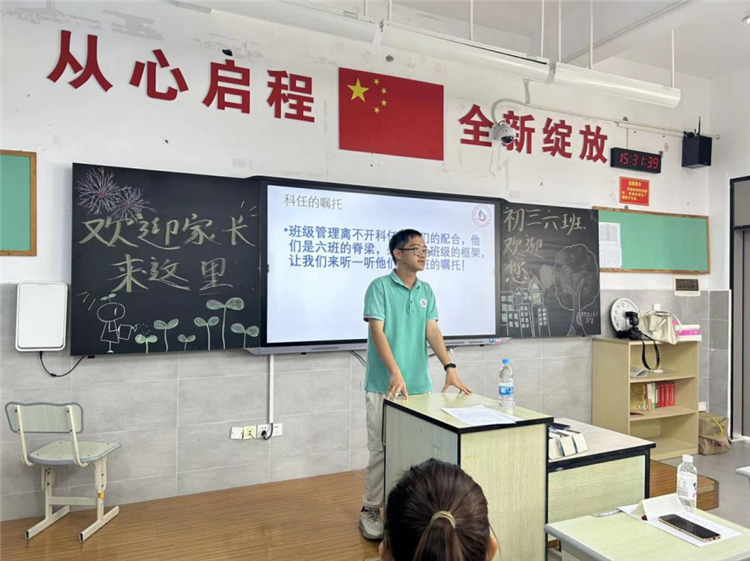 会议第三项,各班班主任与家长们进行面对面交流。各班班班主任向家长们介绍班级总体情况、开学考的考情、成绩分析、中考体育的变化、学生的现状分析、后期建议与改进措施等,并向家长说明初三备考中需要家长配合协助的方面。班级科任老师也主动进班与家长进行沟通与交流。